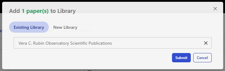 Click within the “Select Library” bar and select “Vera C. Rubin Observatory Scientific Publications” (Figure 3).