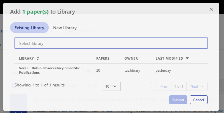 Fig. 3 Click within the Select Library bar and select “Vera C. Rubin Observatory Scientific Publications” library.#